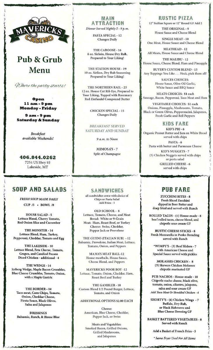 Welcome to Mavericks Roadhouse & Casino, located in the charming Lakeside, MT. This inviting venue pairs an open-air atmosphere with a vibrant culinary experience. You can enjoy a delightful meal while basking in the fresh air and sunshine, thanks to the outdoor seating options.